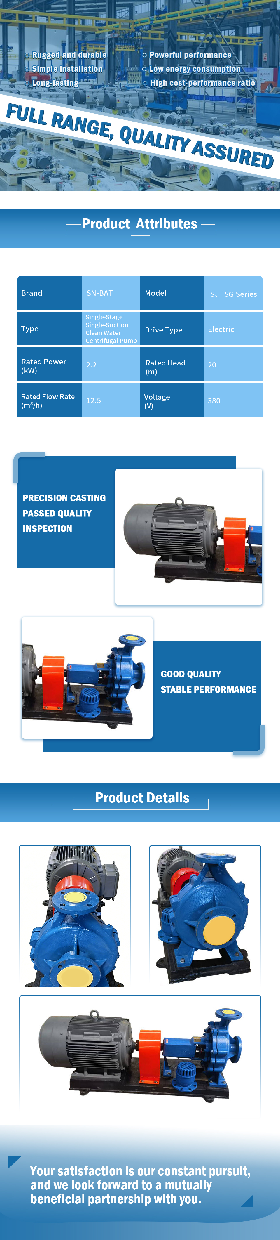 ปั๊มน้ำแรงเหวี่ยงสำหรับน้ำสะอาด แบบขั้นตอนเดียว ดูดทางเดียว